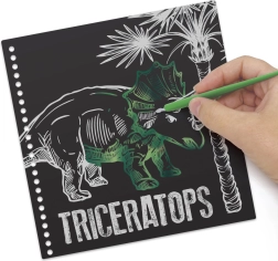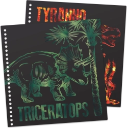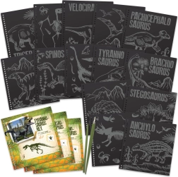 Découvrez la magie des motifs fantastiques avec le carnet à gratter DinosArt. Chaque page offre une toile artistique prête pour votre créativité.