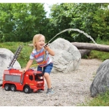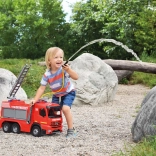 Son principal atout est le canon à eau avec pompe à levier et réservoir d’une capacité de 1,5 litre. Le canon peut être placé au choix sur le toit ou sur l’échelle et projette de l’eau jusqu’à une distance de 8 mètres. Il comprend également une échelle télescopique pour des interventions encore plus réalistes.