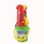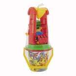 Le seau, la pelle, le râteau et les moules permettent de construire des châteaux, des tunnels et des formes variées. L’ensemble est léger, compact et facile à transporter.