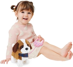 Ce chien en peluche interactif offre beaucoup de plaisir aux enfants grâce à la combinaison de mouvements et d’effets sonores. Après avoir connecté le câble avec télécommande dans l’orifice au niveau du cou, il réagit à différents stimuli : il se met à marcher quand on appuie sur la laisse, déclenche des effets au toucher de la tête et repart en promenade après des applaudissements. Sa matière douce en fait un jouet parfait pour un usage quotidien.