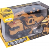 Le pack contient tout pour un démarrage rapide – câble USB de recharge, tournevis et batterie 3,7 V pour le robot. La télécommande nécessite 2× piles AA (non incluses). Un jouet parfait pour les enfants qui aiment les transformations, la technologie et les machines de chantier.