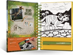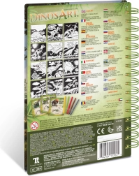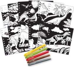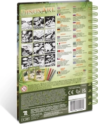 - 12 planches de coloriage en velours, 5 mini feutres, instructions, pages informatives sur les dinosaures