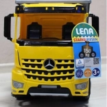 Ce camion-benne pour enfants Mercedes Giants Dump Truck offre un divertissement incroyable pour les enfants. Le modèle AROCS est un tri-essieux au design réaliste, avec cabine jaune, châssis noir et remorque argentée.