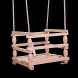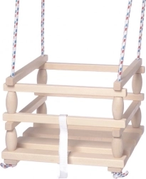 Cette balançoire en bois est spécialement conçue pour les plus petits enfants qui savent déjà s'asseoir seuls. Grâce à sa construction robuste et à sa barrière de sécurité, elle offre un balancement sûr et confortable. La balançoire peut être utilisée à la maison comme à l'extérieur.