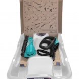 La sécurité avant tout : des freins intégrés assurent un ralentissement fiable et la zone de déformation frontale aide à absorber les chocs. Grâce à son faible poids, la luge se transporte facilement et, avec la corde de traction, vous la remontez sans effort jusqu’au sommet.