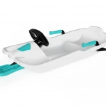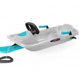 Skipper Titan est une luge moderne et dirigeable conçue pour une glisse rapide et sûre sur la neige. Sa structure robuste en plastique avec base monoskis offre une excellente stabilité et maniabilité, tandis que le volant ergonomique permet des virages fluides même en terrain changeant.