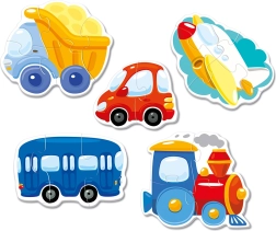 Un ensemble de puzzles merveilleux pour les plus petits avec un motif de moyens de transport, qui développe les compétences motrices et cognitives.