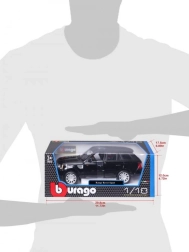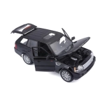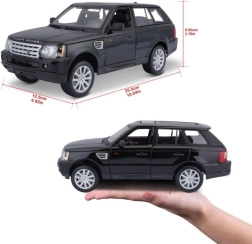 Ce modèle moulé en métal (die-cast) à l’échelle 1:18 reproduit fidèlement les lignes et les proportions du RANGE ROVER SPORT. La peinture noire, la calandre finement réalisée, les phares et les jantes authentiques soulignent la valeur de collection et l’impact visuel du modèle.