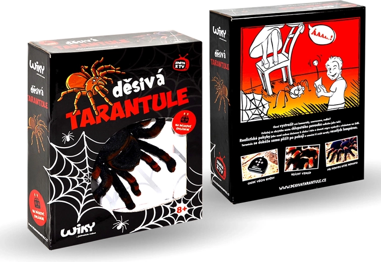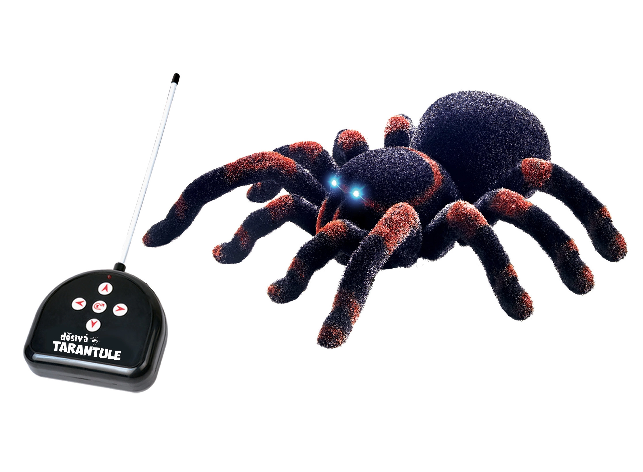 Faites peur à vos amis et frères et sœurs avec une tarentule RC réaliste fonctionnant sur la fréquence 27 MHz. Cette araignée poilue de 22 cm se déplace comme une vraie grâce à ses huit pattes, et ses yeux lumineux créent une ambiance vraiment terrifiante.