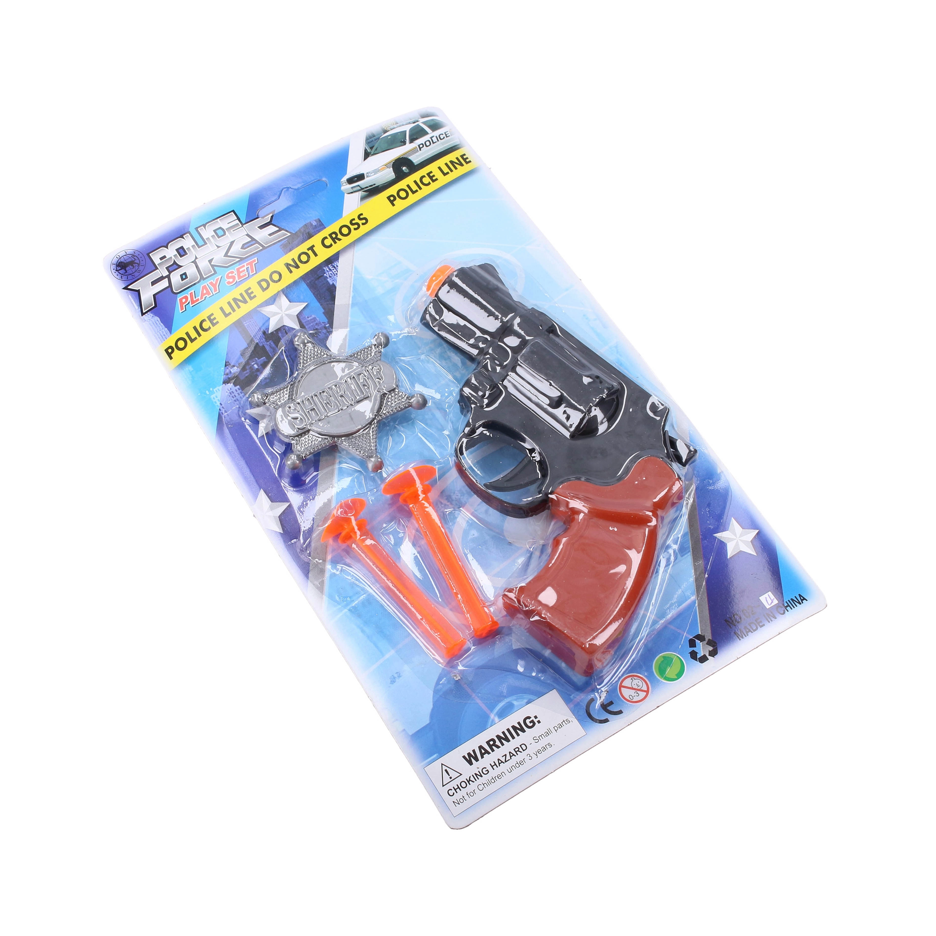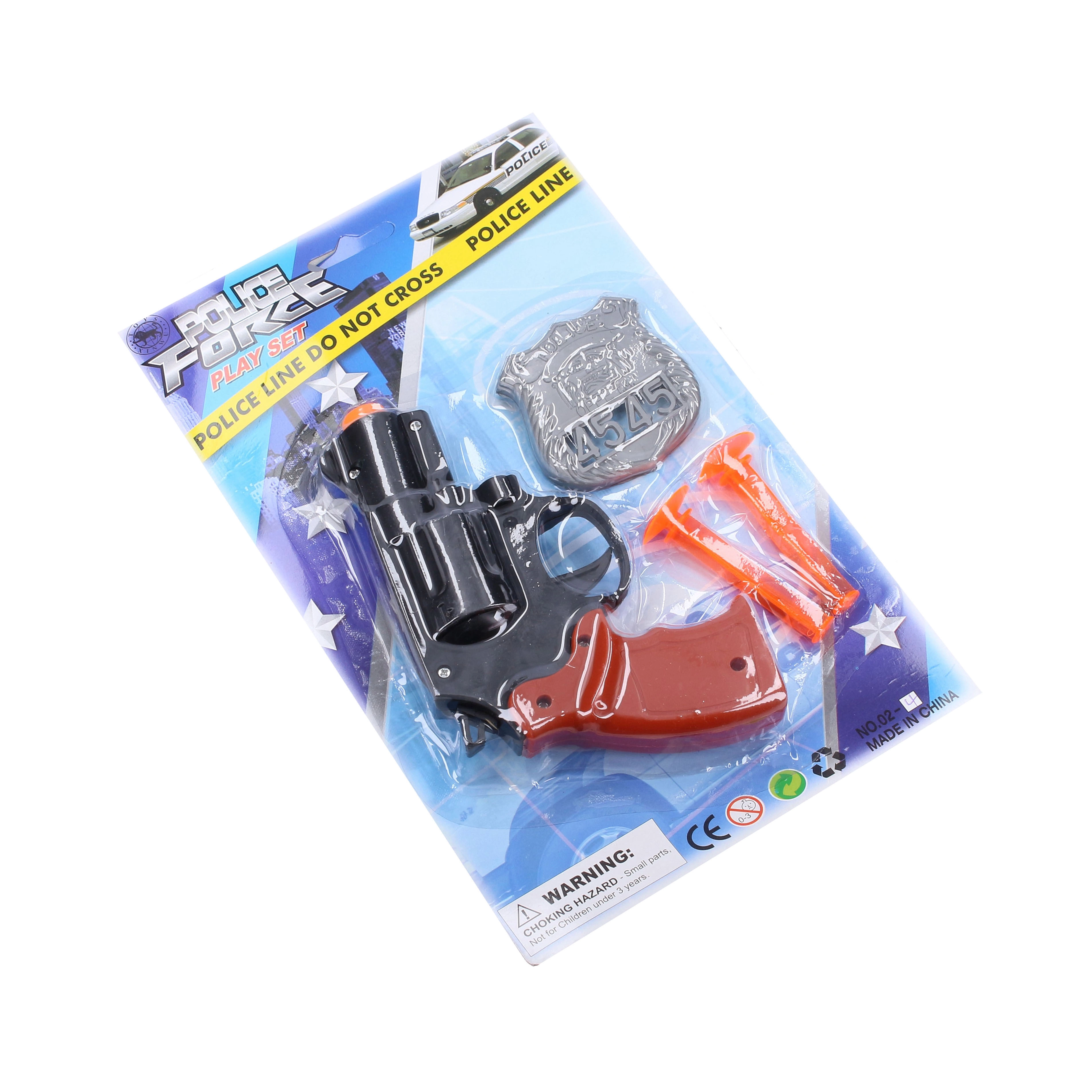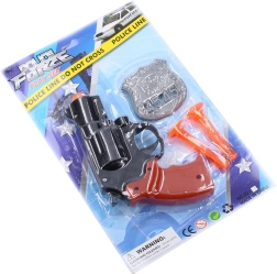 - Pack complet – pistolet, 2 projectiles et badge de police.