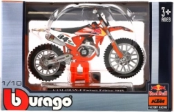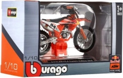 La moto Bburago se distingue par ses finitions détaillées qui apportent une apparence authentique au modèle KTM 450 SX-F Factory Edition 2018.