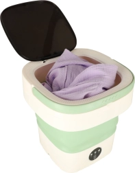 Fini le lavage à la main en voyage. Cette mini machine à laver pliante 12 l est compacte, légère et entièrement automatique avec 3 modes de lavage (3/5/10 min). Grâce à l’IPX4, au pilotage tactile facile et à la poignée de transport, elle est idéale pour le camping, le chalet et les petits appartements.