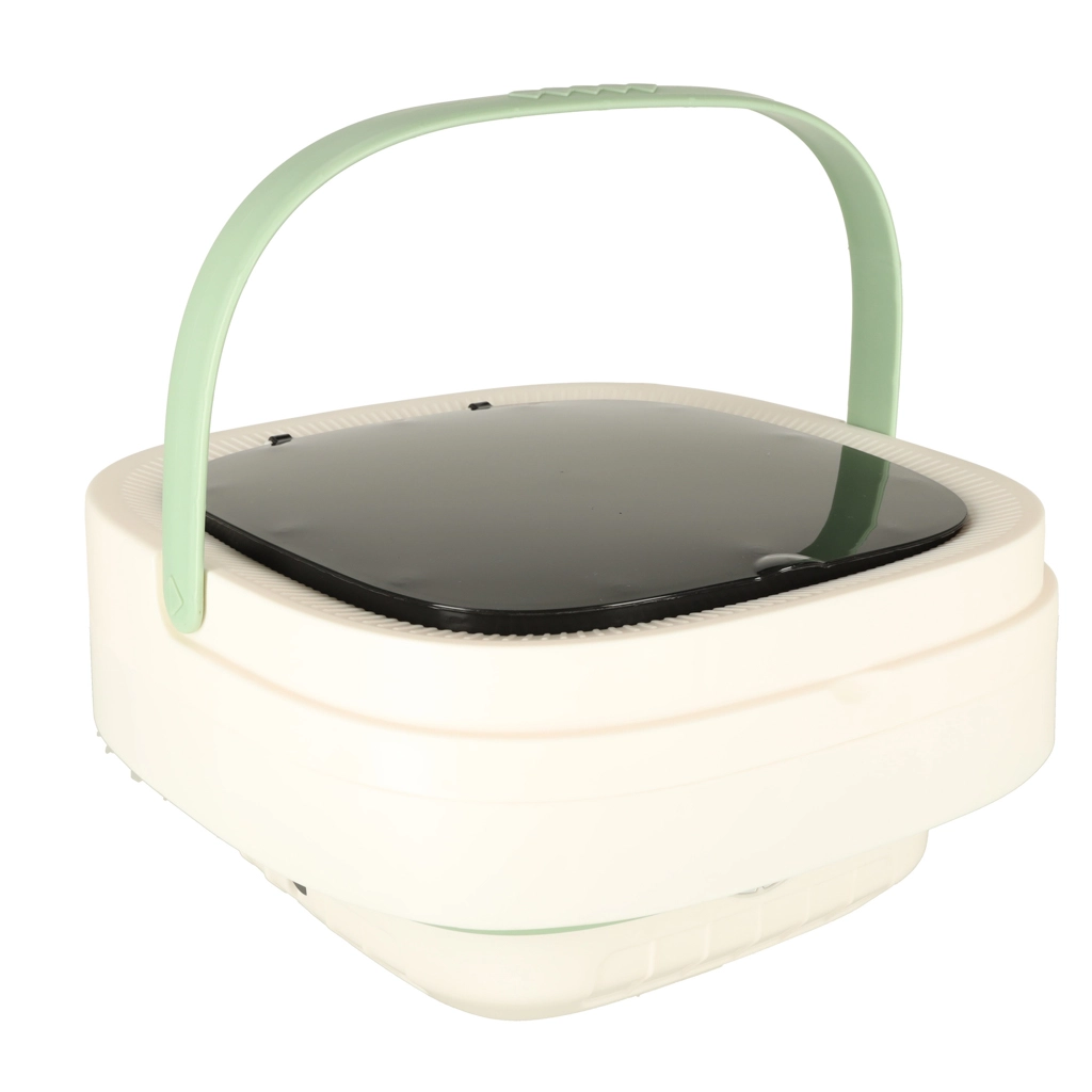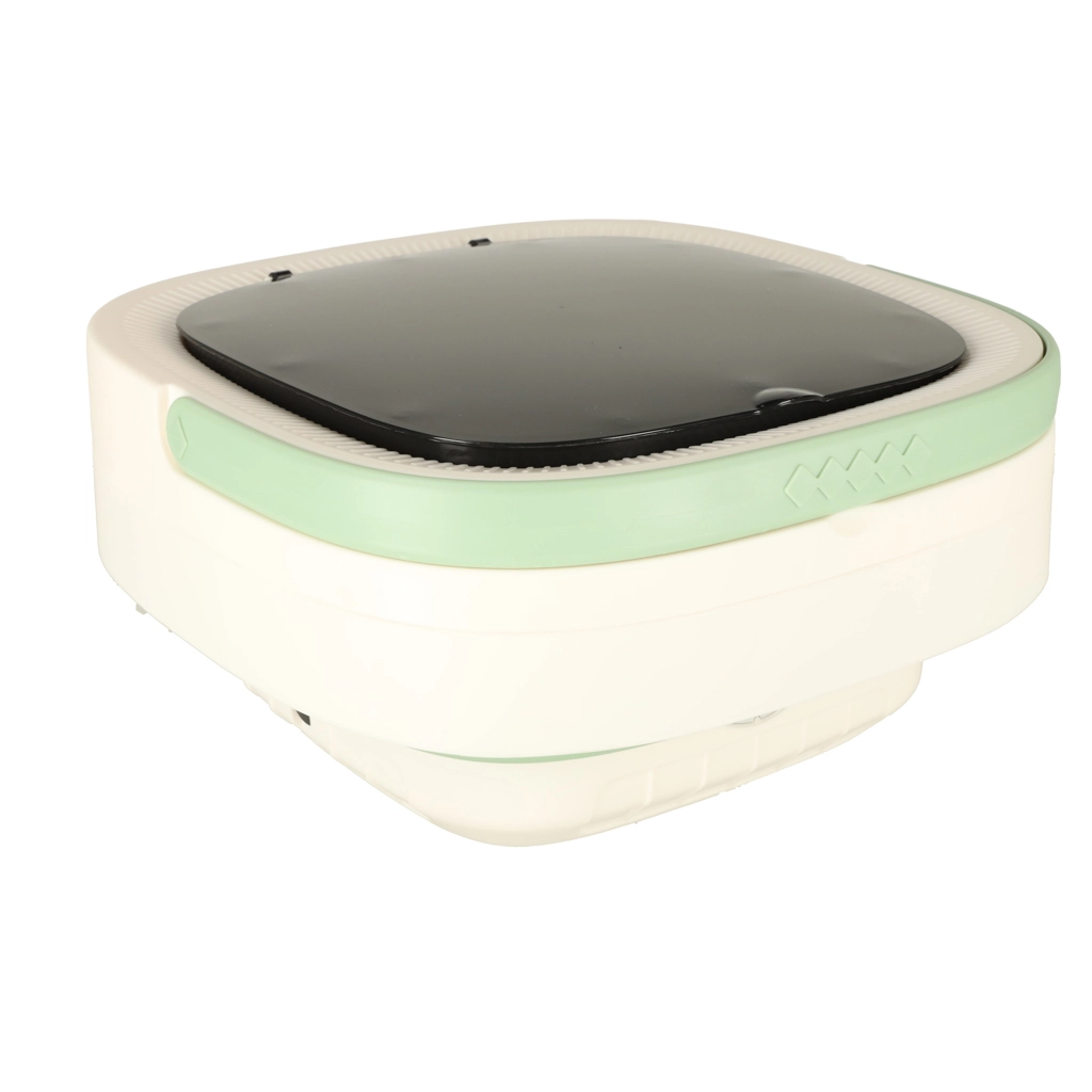 Avec cette machine à laver portable, lavez t-shirts, sous-vêtements ou vêtements pour enfants où que vous soyez – il suffit d’eau et d’une alimentation 12 V. Le corps pliant en silicone économise de la place, il se glisse sans problème dans une valise ou un sac à dos, et la poignée pratique assure un transport confortable.