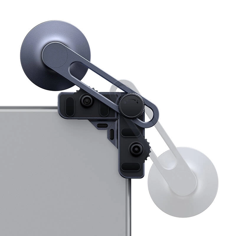 Deux bras de serrage avec boutons fixent solidement le support sur des écrans d’une épaisseur de 7,5 à 14 mm. Le design suspendu ne gêne pas la vue de l’écran du véhicule.