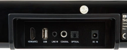 - HDMI (ARC), entrée optique (Toslink), coaxial, USB, entrée ligne (AUX)