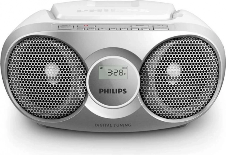 Profitez de votre musique préférée partout ! Ce boombox portable et compact de Philips offre une utilisation simple, un son clair et une lecture universelle depuis des CD. Il prend en charge les disques CD, CD-R et CD-RW, propose les fonctions Shuffle et Repeat, un renforcement dynamique des basses et une entrée audio 3,5 mm pour connecter votre téléphone ou votre ordinateur portable. La puissance totale de 3 W RMS assure une écoute agréable à la maison comme en déplacement.
