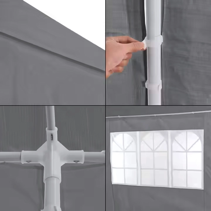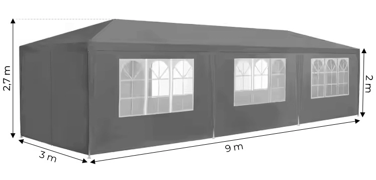 Tente commerciale de jardin 3x9 m, 8 parois, gris