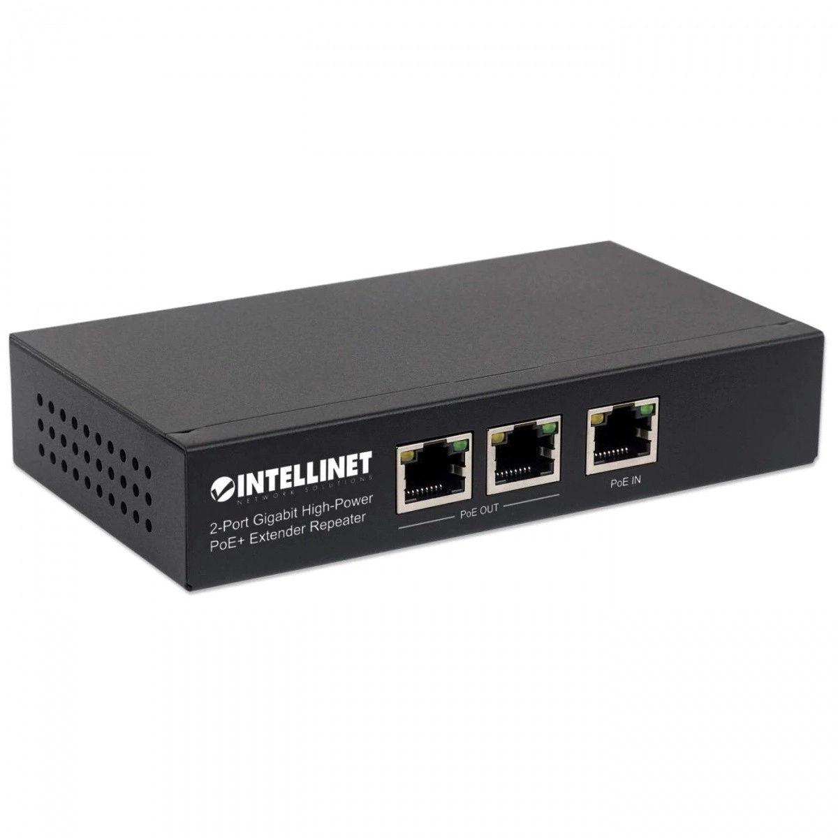 Extenseur Intellinet 2-Port High-Power PoE+ permet une extension facile du réseau, fournissant alimentation et données pour deux appareils PoE et double la portée de 100 à 200 mètres.