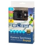 Caméra d’action BLOW Pro4U légère et robuste, capable de capturer vos aventures en 4K à 30 ips, avec Wi‑Fi, objectif grand angle 170°, écran LCD 2" clair et boîtier étanche jusqu’à 30 m. Elle prend en charge les cartes microSD jusqu’à 64 Go, l’enregistrement pendant la charge et peut aussi servir de webcam.