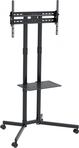 Le support est compatible avec les téléviseurs LED, LCD et plasma de marques telles que Sony, LG, Samsung et autres. Il dispose d’une étagère réglable pour l’installation d’accessoires comme un lecteur DVD ou une console de jeu. Le support est équipé de roulettes pour un déplacement aisé. Idéal pour les salles de conférence, les aéroports et les présentations publiques.