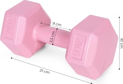 Entraînez-vous efficacement à la maison avec les haltères roses ModernHome. Le set comprend 2 pièces de 2 kg, qui favorisent un renforcement complet du corps – bras, dos, abdominaux, jambes et fessiers. Grâce à la forme hexagonale, les haltères sont stables et sûrs, vous pouvez donc les poser en toute tranquillité pendant un circuit ou lors des pauses.
