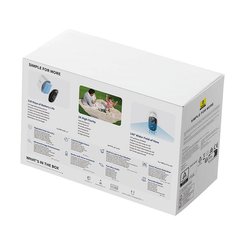 La caméra extérieure Baseus N1 fournit une image nette et détaillée en 2K, vous permettant d’identifier aisément personnes et objets jusqu’à 8 mètres. Son champ de vision de 145° réduit les angles morts et la vision nocturne en couleur garantit des prises de vue claires après la tombée de la nuit. Grâce à sa batterie performante de 7800 mAh, la caméra fonctionne jusqu’à 210 jours sur une seule charge, minimisant les besoins de recharge.