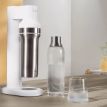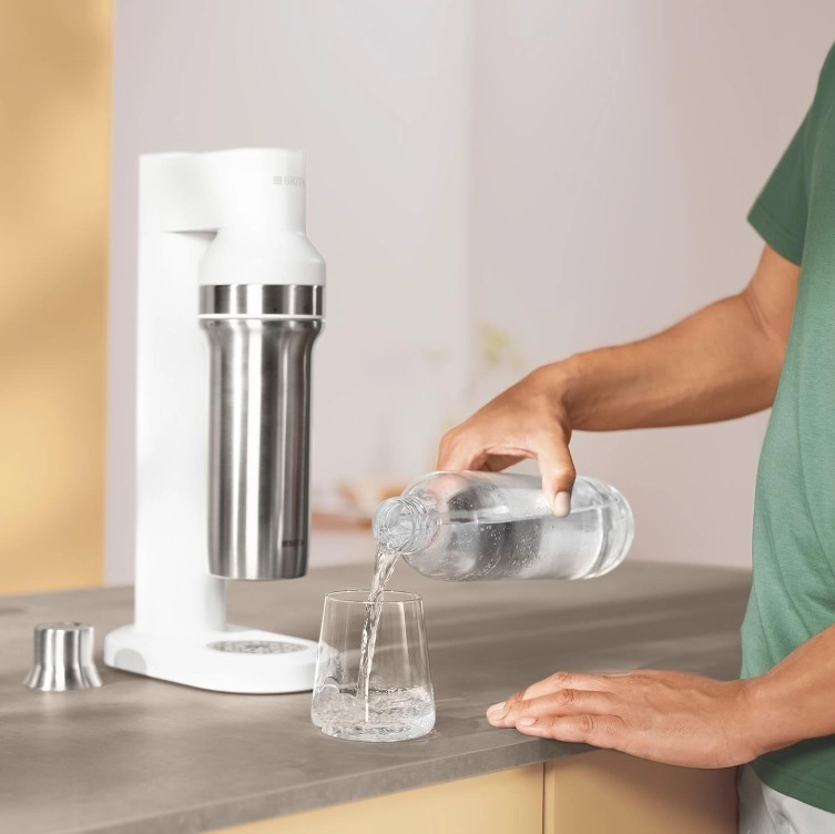 Sa conception pratique avec un système de vissage universel pour cylindres de CO2 courants garantit une utilisation aisée : remplissez la bouteille, vissez, appuyez et gazéifiez. L’entretien est un jeu d’enfant grâce à l’embout amovible et à la grille d’égouttage magnétique en acier inoxydable. Son look minimaliste et ses dimensions fines s’intègrent parfaitement dans une cuisine moderne.