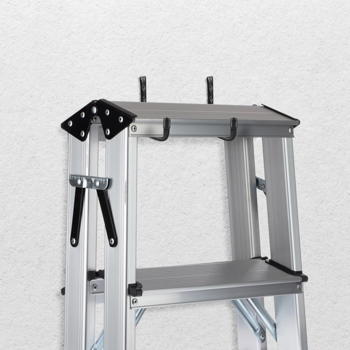 L’installation est rapide et se fait en un rien de temps. Les crochets conviennent pour suspendre des pneus et des vélos, mais aussi des échelles, des équipements de jardin, des tuyaux ou des outils – une solution universelle pour optimiser l’espace.