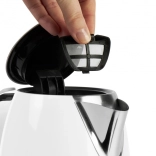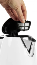 Pour une longue durée de vie, elle est équipée d’un filtre anticalcaire en acier inoxydable qui retient le tartre. Le filtre se retire, se nettoie et se remet facilement ; un filtre de rechange est en outre fourni pour un fonctionnement prolongé en toute sérénité. La base rotative à 360° et le service sans fil garantissent une manipulation confortable.