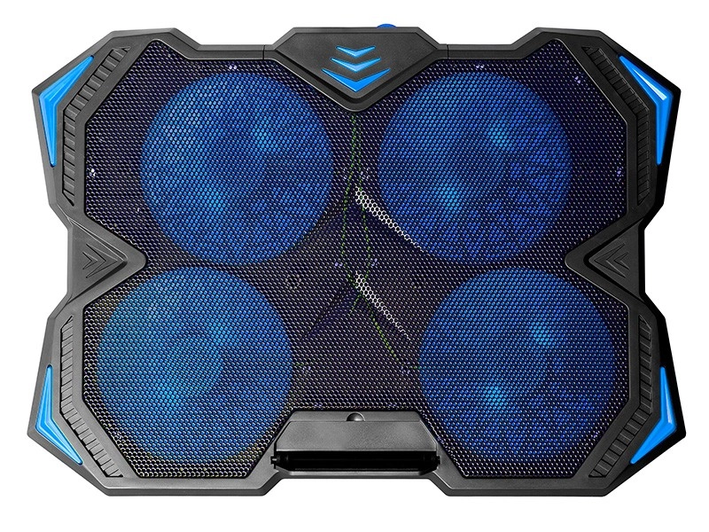 Ventilateurs puissants et silencieux : Le support est équipé de quatre ventilateurs silencieux de 140 mm pouvant atteindre jusqu’à 1000 tours par minute, assurant un refroidissement efficace de votre appareil. L’éclairage LED bleu confère un look futuriste.