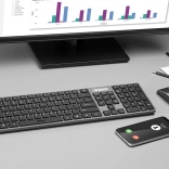 Le set sans fil TRACER rehausse avec élégance tout espace de travail. Le clavier à membrane complet, à faible course et équipé de 4 touches multimédias, offre un confort de frappe toute la journée, tandis que la souris compacte à forme symétrique assure une prise en main sûre et un suivi précis. Son design minimaliste noir et argent s’intègre aussi bien au bureau à domicile qu’en environnement professionnel.