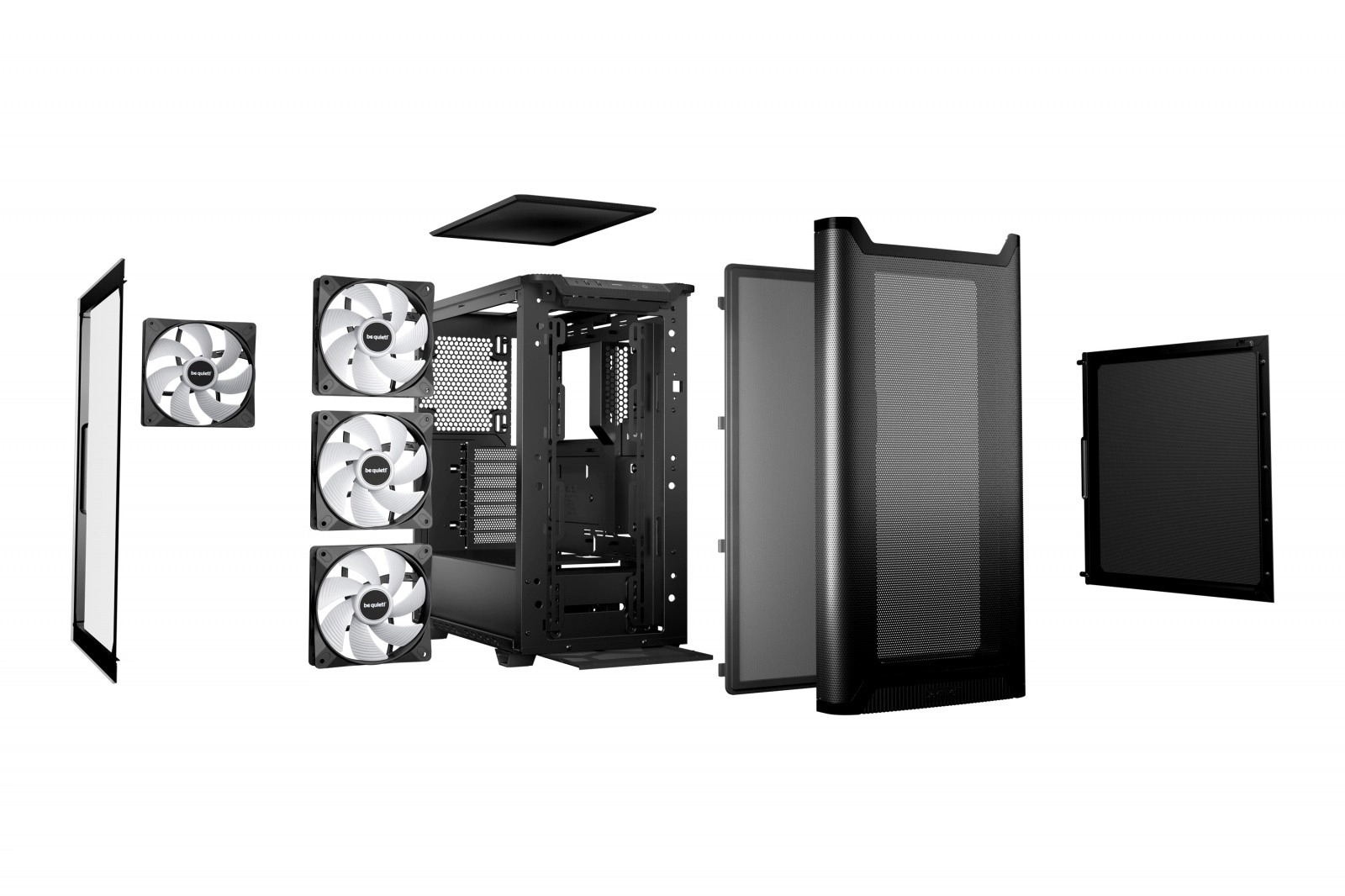 Quatre ventilateurs Light Wings LX PWM préinstallés offrent une forte pression statique, un excellent flux d’air et un éclairage RGB adressable spectaculaire pour une configuration parfaitement équilibrée.
