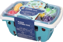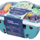Amusant set de cuisine pour enfants dans un panier de couleur bleue qui ravira les petits cuisiniers et cuisinières. Contient des fruits et légumes à couper, un couteau pour enfants et d'autres ustensiles pour jouer à cuisiner. Le panier compact 26 × 19 × 14 cm facilite le rangement et le transport.