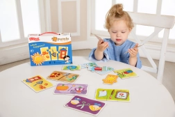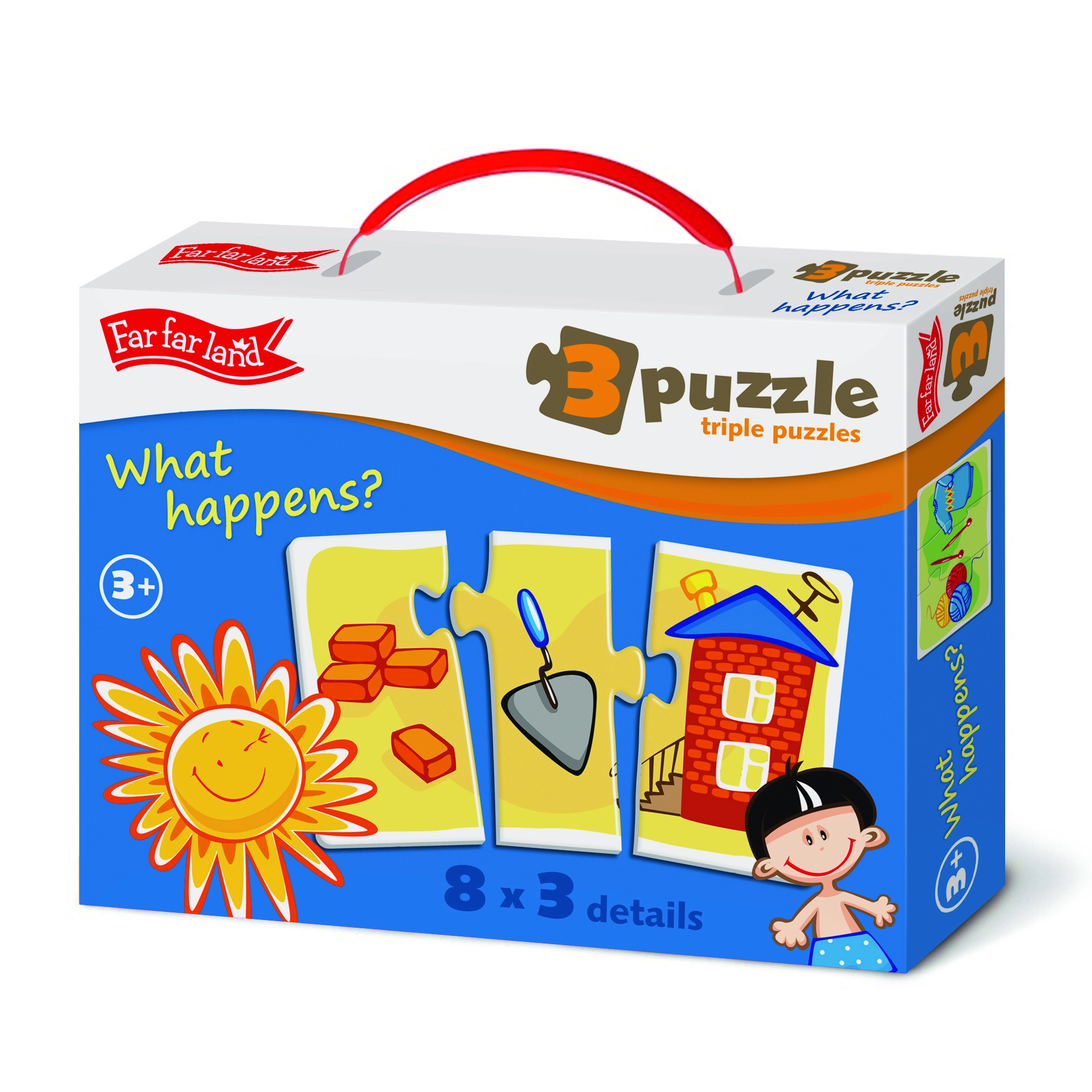Découvrez l’ensemble malin Far Far Land, qui apprend aux enfants, de façon ludique, l’appariement et les liens entre les objets. Chaque image est divisée en trois pièces et l’objectif est de trouver la bonne trio qui va ensemble. L’assemblage favorise la concentration, la patience et apporte la joie de chaque motif réussi.