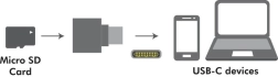 Ce lecteur de cartes microSD portable avec USB‑C est l’accessoire idéal pour des transferts rapides entre la carte et un ordinateur portable, un téléphone ou une tablette. Grâce à la fonction USB OTG, il se connecte facilement aux appareils Android et Windows, ainsi qu’au MacBook. Le corps métallique avec œillet et chaînette en fait un accessoire robuste pour porte‑clés, toujours à portée de main.