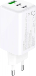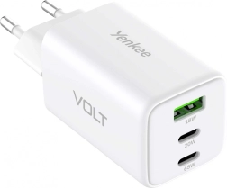 Chargeur VOLT compact et performant doté de la technologie GaN, offrant une puissance totale jusqu’à 65 W et trois sorties (2× USB‑C + 1× USB‑A) pour recharger plusieurs appareils simultanément. Il prend en charge les normes Power Delivery 3.0 et Quick Charge 4.0, pour une charge rapide et sûre des ordinateurs portables, tablettes et smartphones – un chargeur universel pour tous vos appareils.