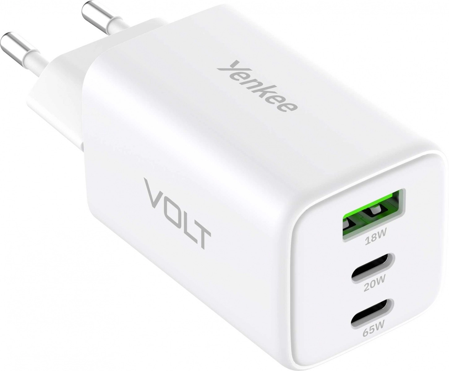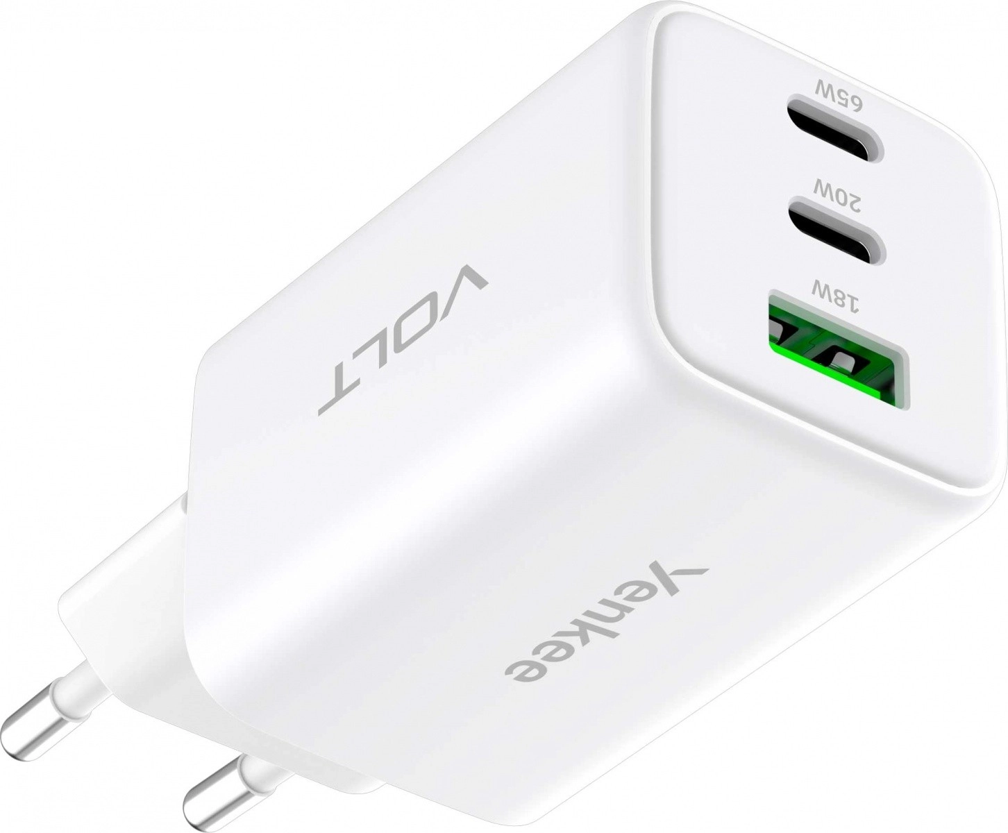 Le chargeur VOLT 65 W utilise la technologie moderne GaN, ce qui le rend plus compact, plus froid et plus efficace que les adaptateurs classiques. Trois ports offrent une charge confortable de plusieurs appareils à la fois, l’USB‑C pouvant fournir une puissance élevée pour les ordinateurs portables et l’USB‑A rechargeant rapidement vos accessoires.