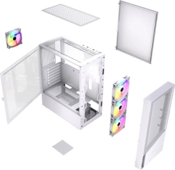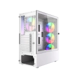 Le Fornax 4300 est un boîtier midi tower blanc conçu pour les joueurs et les utilisateurs exigeants recherchant un excellent airflow, un éclairage ARGB spectaculaire et un montage confortable. Les panneaux mesh avant et supérieur favorisent une circulation d’air intense, tandis que les quatre ventilateurs ARGB préinstallés maintiennent les composants à des températures optimales même lors de longues sessions de jeu.