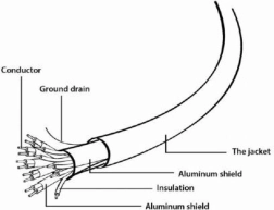 Le schéma détaillé illustre la structure interne du câble, y compris le conducteur, l’isolation et la gaine de protection.
