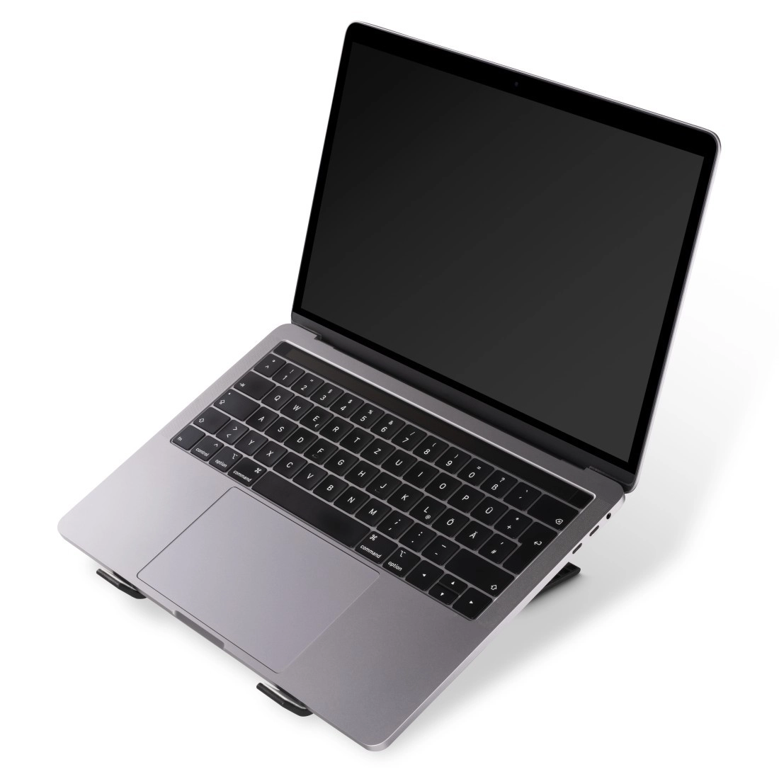 Les patins en caoutchouc assurent une tenue ferme de l’ordinateur et du support tout en protégeant le plateau de travail des rayures.