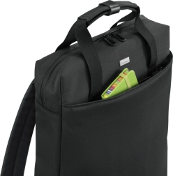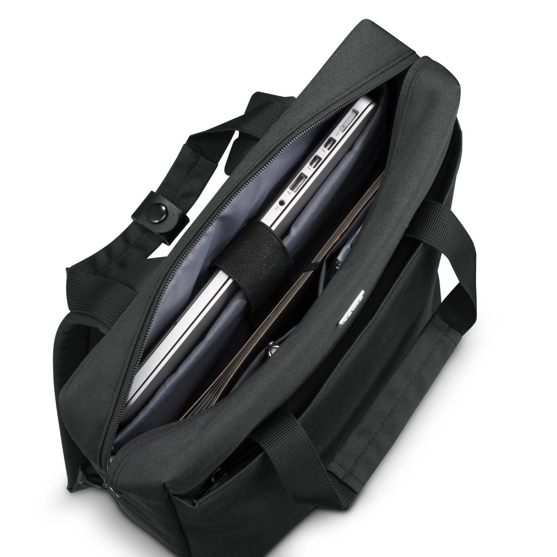 L’intérieur est complété par des bandes velcro élastiques pour sécuriser l’ordinateur, les documents et les dossiers. Les poignées avec finition de surface offrent une prise agréable et l’ensemble met l’accent sur la durabilité : l’emballage est certifié FSC.