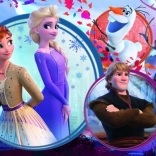 L'illustration réunit Elsa, Anna, Olaf, Kristoff et le renne Sven – la scène colorée « Aventure entre sœurs » ravira tous les fans.