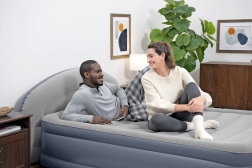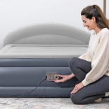 Grâce à la pompe électrique intégrée, vous préparez le matelas sans effort en quelques minutes. La tête de lit intégrée LoungeLux augmente le confort lors de la lecture ou du visionnage de la télévision et le rebord périphérique maintient le corps en sécurité au centre. Une fois dégonflé, le matelas se plie de manière compacte dans la sacoche en nylon fournie, parfait pour voyager et pour un rangement peu encombrant.