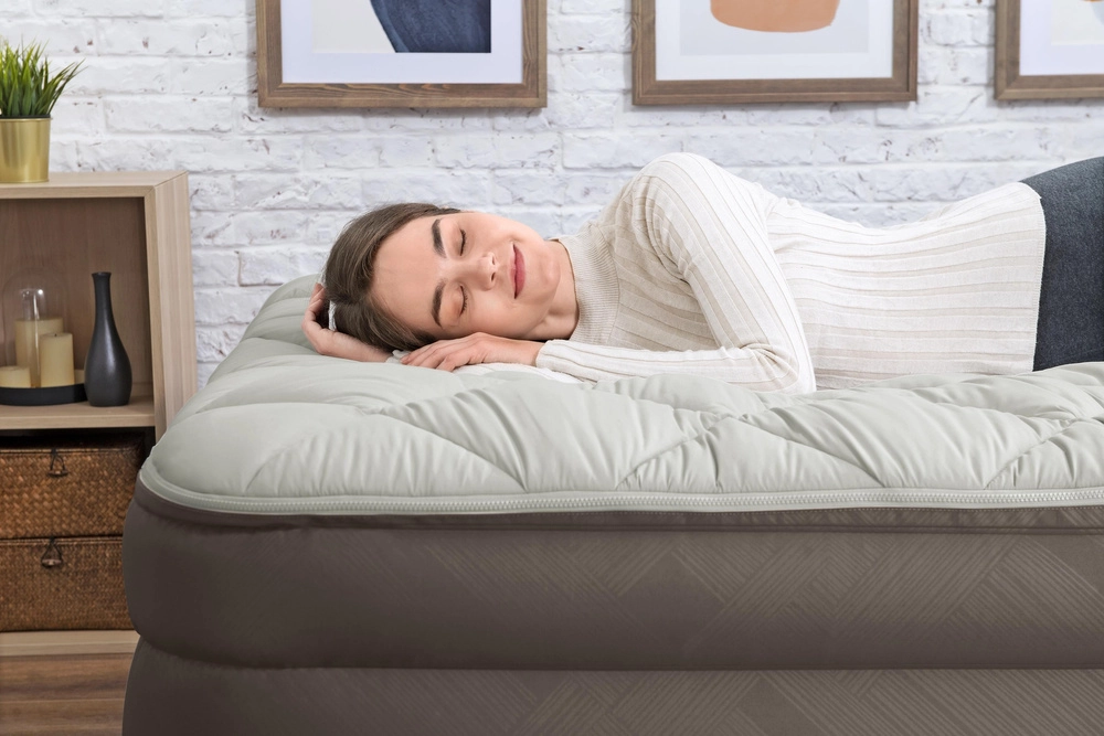 La pompe intégrée gonfle et dégonfle le matelas en environ 5 minutes. Plus besoin d’effort manuel ni d’accessoires supplémentaires.