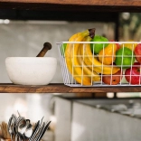 Ses dimensions universelles et son look minimaliste s’intègrent aux intérieurs modernes comme classiques. Utilisez le panier dans le garde-manger, sur une crédence de cuisine, dans la salle de bain ou la buanderie. La structure métallique robuste avec revêtement par poudre garantit une longue durée de vie et un entretien facile.
