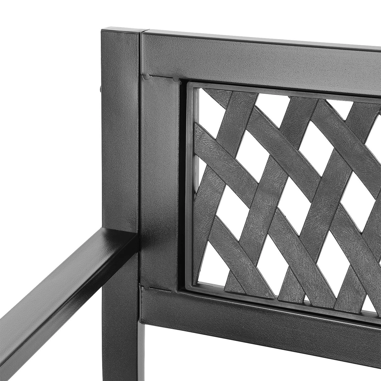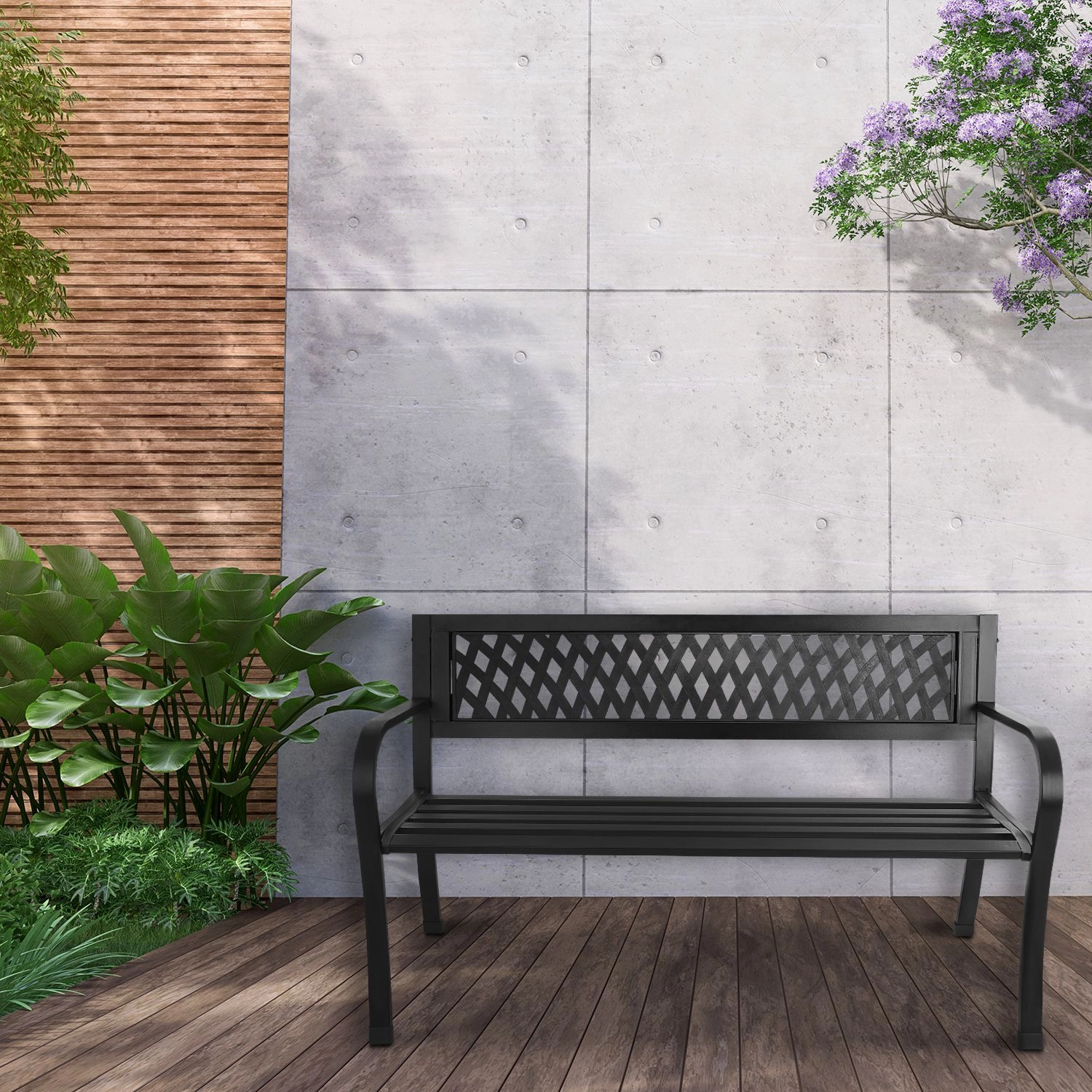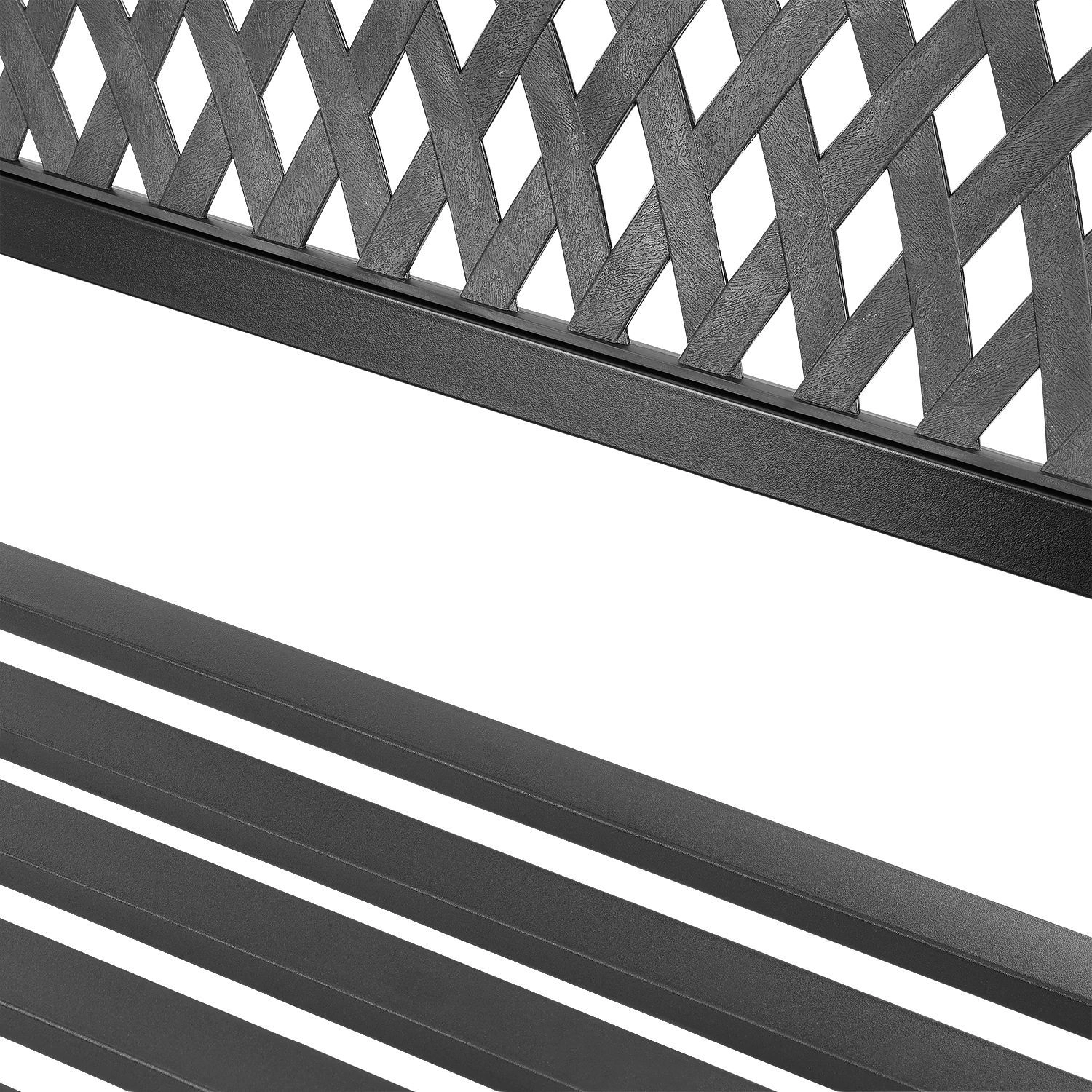 Élégant banc de jardin avec dossier alliant une structure métallique durable à un motif ajouré stylé, idéal pour tout jardin, terrasse ou balcon. Il offre un soutien ergonomique du dos, une capacité de charge de 180 kg et est résistant aux intempéries. Des embouts antidérapants protègent les surfaces et augmentent la stabilité. Montage facile dès le déballage pour un confort maximal.