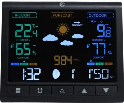 La station météo est équipée d'un baromètre qui permet de surveiller continuellement la pression atmosphérique et de prédire les changements météorologiques. La mesure de l'humidité de l'air à l'intérieur et à l'extérieur assure un meilleur confort dans l'environnement domestique. Grâce à la prévision météo intégrée, il est possible de planifier facilement sa journée.