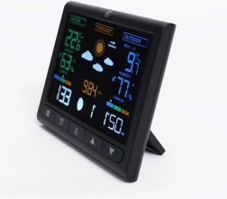 Cette station météo sans fil est équipée d'une horloge radio-pilotée et d'un grand écran LCD coloré qui permet une lecture facile des données quelles que soient les conditions.