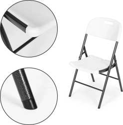 La structure métallique avec revêtement par poudre et les pieds antidérapants garantissent durabilité et sécurité. Le mécanisme pliant permet un pliage et un dépliage rapides de la chaise.
