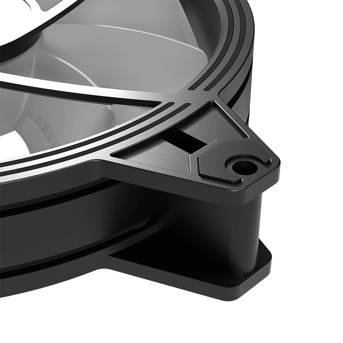 Grâce au profil optimisé des pales, le ventilateur génère un débit d'air élevé et une pression statique stable – idéal pour une installation en position avant, arrière ou supérieure du boîtier. Les roulements FDB et les patins antivibrations maintiennent un faible niveau sonore (environ jusqu'à 27 dB à 100 %), pour travailler ou jouer la nuit sans être dérangé.